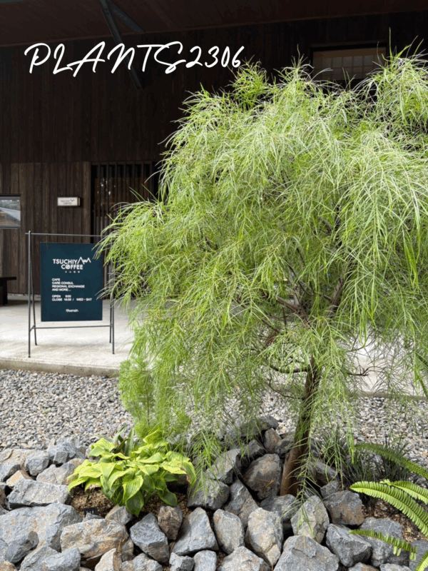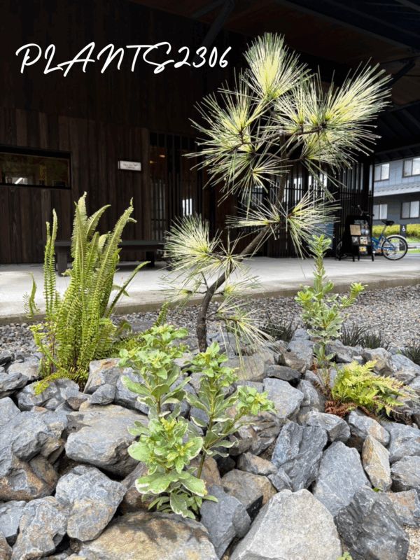 タマシダ、トベラなどしっとりツヤ感のある下草を共存させ特別なお庭を演出させていただきました。