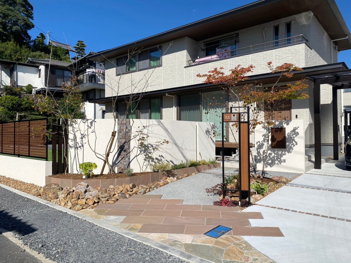 これらの要素を組み合わせることで、機能的でありながら、自然の温もりを感じられるエクステリアが完成しました。