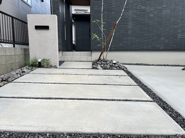 今回は、建物の外観に合わせたシンプルでモダンなエクステリアをご提案しました。無駄を削ぎ落としたデザインの中にも、細部にこだわり、住まいの魅力を引き立てる空間を創り出しています。