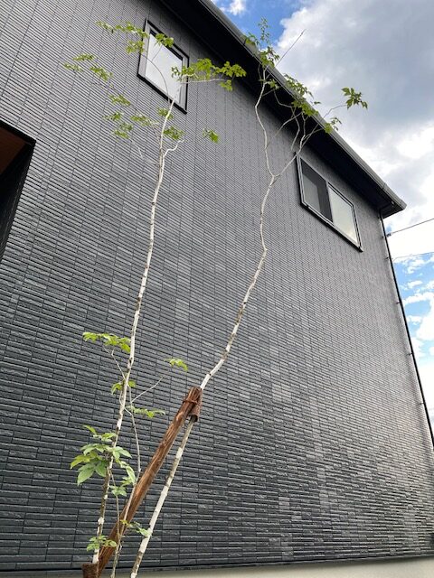 「イメージ通りのモダンな外観に仕上げていただき、とても満足しています。アオダモが風に揺れる姿を見るたび、心が安らぎます。夜にはライトアップされて、昼間とは違う表情を楽しめるのも嬉しいです。」